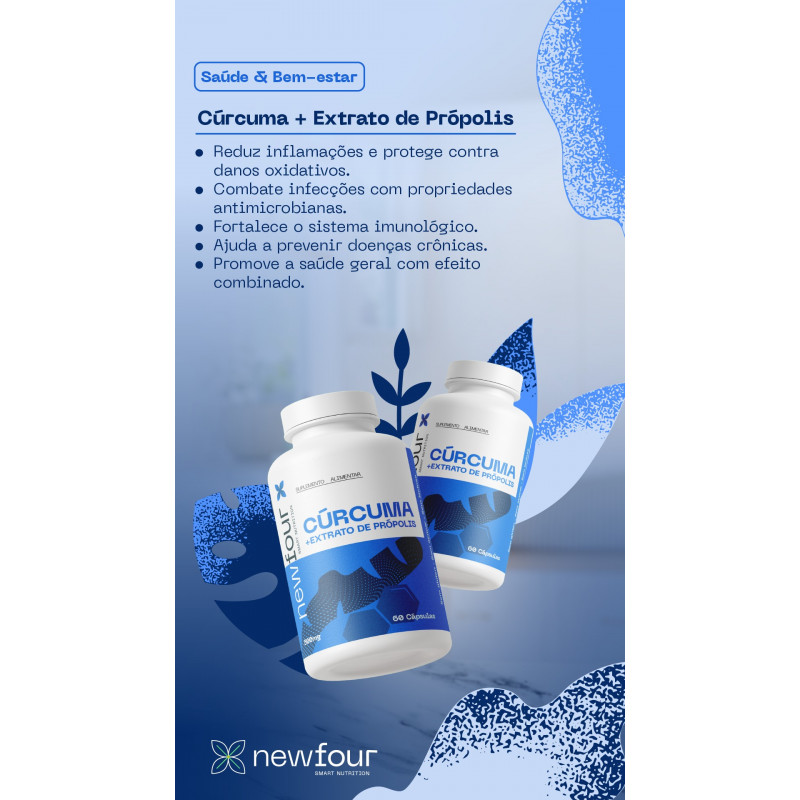 Ver MaisCombina os benefícios anti-inflamatórios e antioxidantes da curcumina com as propriedades antimicrobianas e imunomoduladoras do própolis. A cúrcuma ajuda a reduzir inflamações e protege contra o estresse oxidativo, enquanto o própolis fortalece o...